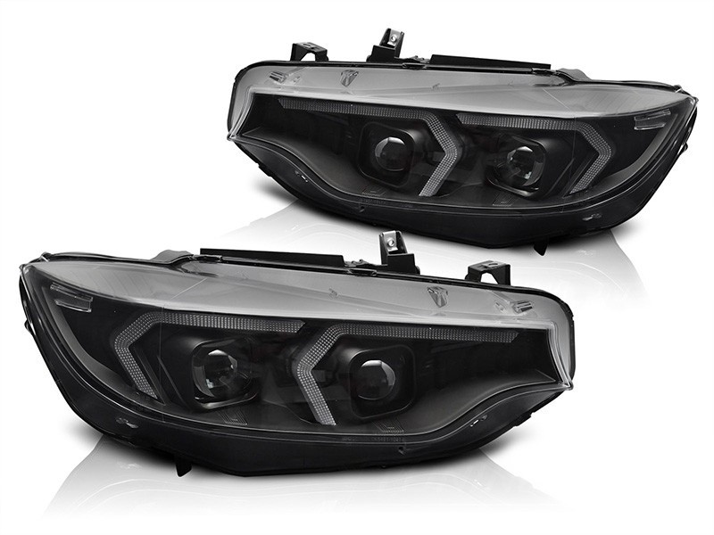 Комплект ксенонови фарове за BMW серия 4 F32 купе, F33 кабрио 2013-2017 с черна основа, за модела с фабрични DRL светлини, без AFS, ляв и десен
