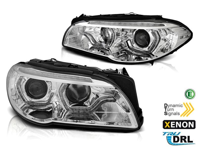 Комплект ксенонови фарове с 3D ангелски очи за BMW серия 5 F10, F11 2010-2013 без AFS, хром основа, ляв и десен
