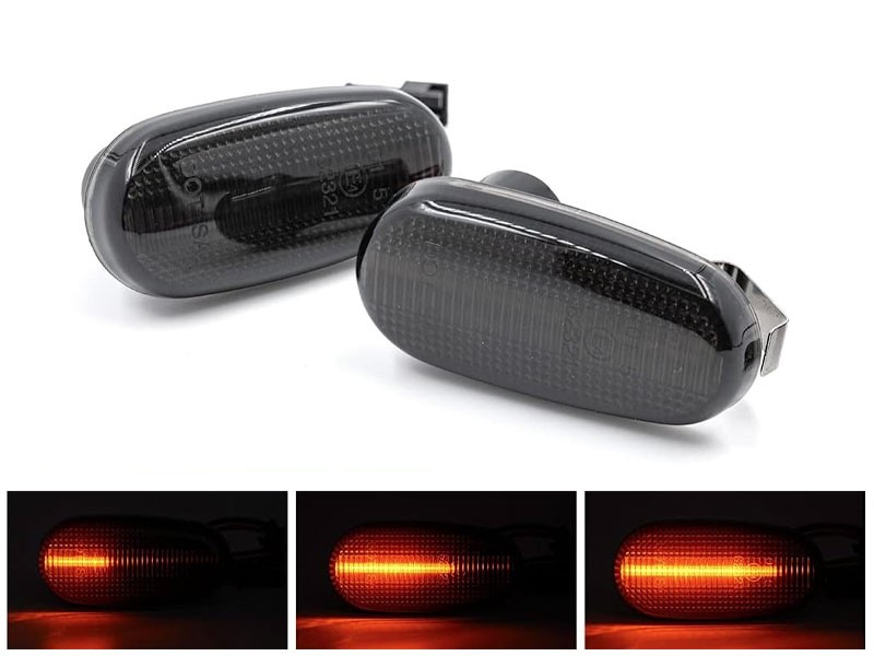 Комплект странични LED динамични мигачи за Alfa Romeo 14 2000-2004, GT 2003-2010, Mito 2008-2018, Fiat Bravo хечбек 2007-2014 с опушена основа, ляв + десен