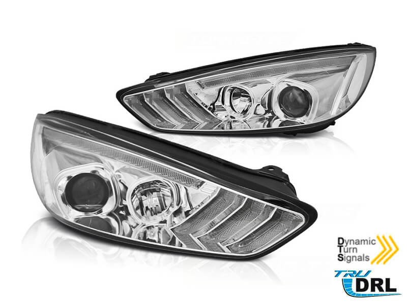 Комплект тунинг фарове за Ford Focus MK3 2015-2018 с хром основа, ляв и десен