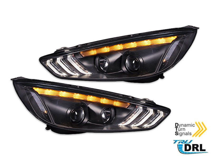 Комплект тунинг фарове за Ford Focus MK3 2015-2018 с черна основа, ляв и десен