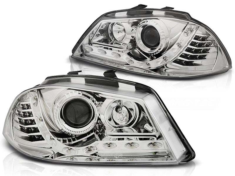 Комплект тунинг LED фарове за Mercedes C класа W204, S204 2011-2014 с хром основа, ляв и десен