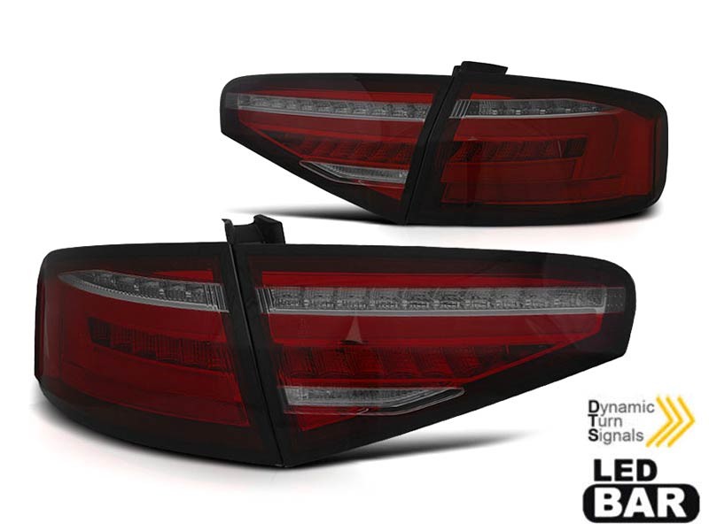 Комплект тунинг LED стопове за Audi A4 B8 седан 2012-2015 червено-опушена основа за модела с халогенни стопове, ляв и десен