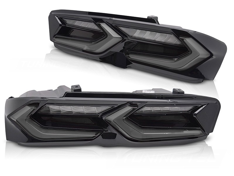 Комплект тунинг LED стопове за Chevrolet Camaro 2019-2023, с динамичен мигач, черно-опушена основа, ляв и десен