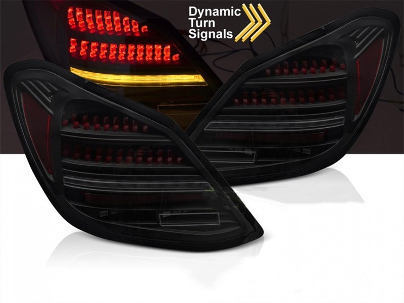 Комплект тунинг LED стопове за Mercedes C класа W205 седан 2014-2021, червено-опушена основа, с динамичен мигач, ляв и десен