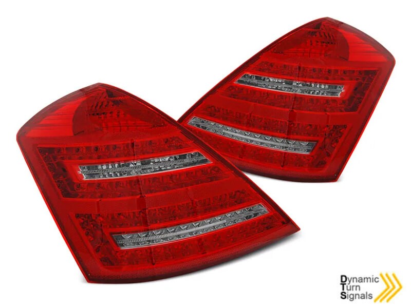 Комплект тунинг LED стопове за Mercedes W221 S класа 2005-2009 червено и бяла основа, с динамичен мигач, ляв и десен