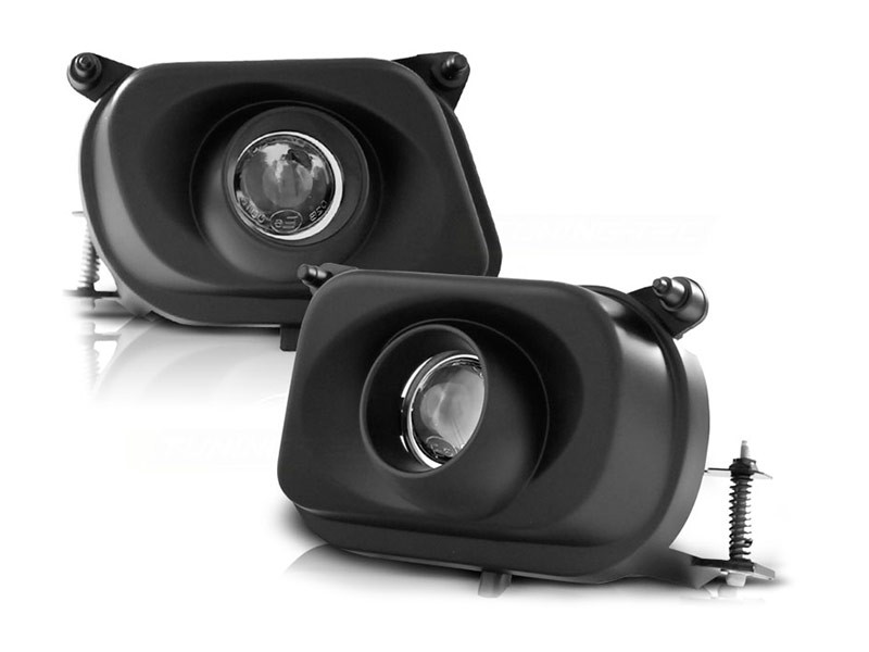 КОМПЛЕКТ ХАЛОГЕНИ С ЛУПА ЗА MERCEDES E КЛАСА W210 1995-1999 ЧЕРНИ, ЛЯВ + ДЕСЕН
