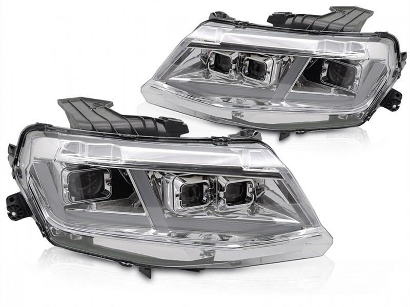 Комплект LED тунинг фарове за Chevrolet Camaro 2016-2018 с хром основа, с динамични мигачи, за модела с фабрични DRL светлини, ляв и десен