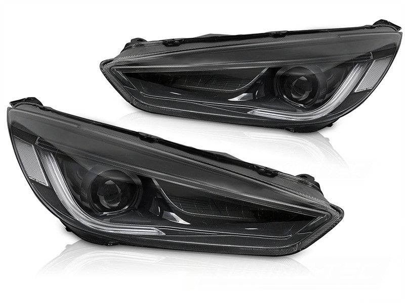 Комплект LED тунинг фарове за Ford Focus 2014-2018 с черна основа, за модела с фабрични DRL светлини, с динамични мигачи, ляв и десен