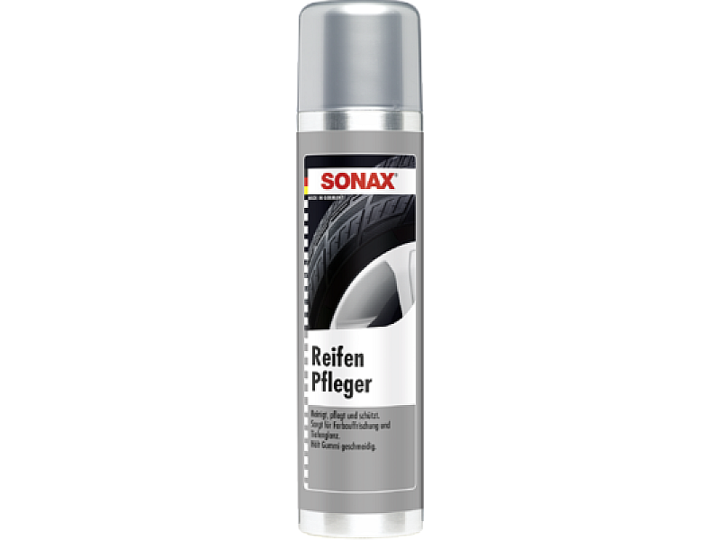 Почиства замърсените автомобилни гуми и възстановява наситения цвят и оригиналния дълбок блясък на износените гуми. Грижи се за гумата, поддържа я еластична и предпазва от чупливост. Мощната активна пяна разхлабва мръсотията, която лесно може да изтече след като пяната се срути.Приложение на продуктаРазклатете кутията преди употреба.За силно замърсени гуми, тези z. Б. предварително почистване с шампоан за блясък SONAX.Напръскайте външната страна на гумата равномерно навсякъде от разстояние приблизително 20 cm. Уверете се, че подът не е напръскан (опасност от подхлъзване!). Евентуално покрийте пода.Оставете да изсъхне за 5 минути.Ако е необходимо, избършете с чиста кърпа.