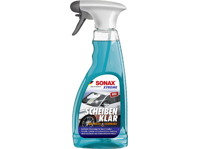 Особено мощният препарат за почистване на стъкло с технология за чиста вода осигурява подобрено овлажняване на стъклената повърхност. Това ефективно отстранява филми от масло и сажди, както и остатъци от мръсотия от насекоми отвън, зацапващи филми, пръстови отпечатъци и остатъци от никотин отвътре. Идеален и в домакинството за почистване на прозорци и огледала.Приложение на продуктаЗавъртете дюзата на пръскачката в позиция за пръскане.Напръскайте тънък слой върху повърхностите за почистване и разпределете с мека хартиена кърпа или микрофибърна кърпа SONAX PLUS интериор + прозорец.Избършете с нова, суха кърпа или суха част от микрофибърната кърпа SONAX, без да оставяте ивици.